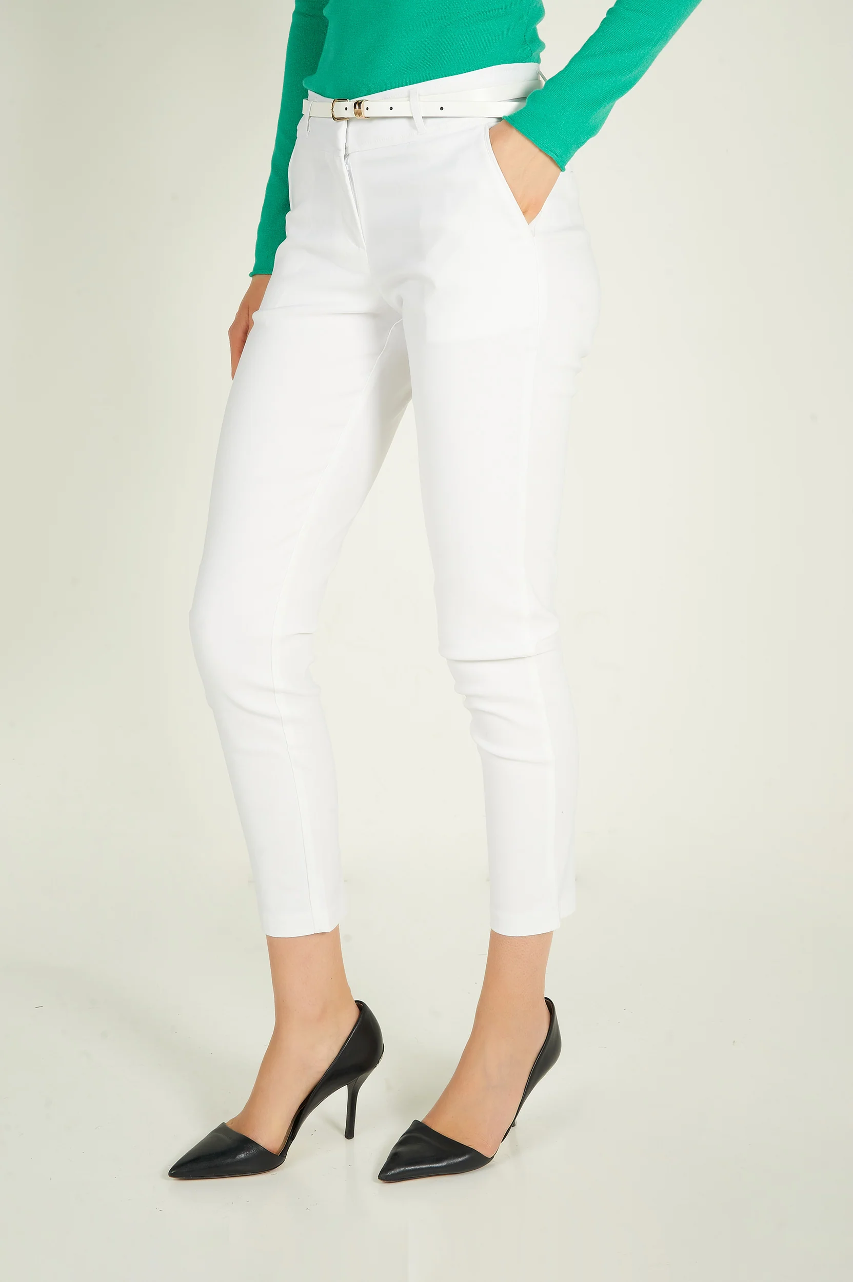 Affichez votre élégance avec notre pantalon pour femme, HP9080-Y1. Confortable et chic, ce pantalon ajusté, accompagné d'une ceinture assortie, vous offrira une silhouette flatteuse. Disponible en trois couleurs: pantalon blanc, pantalon beige et pantalon noir.