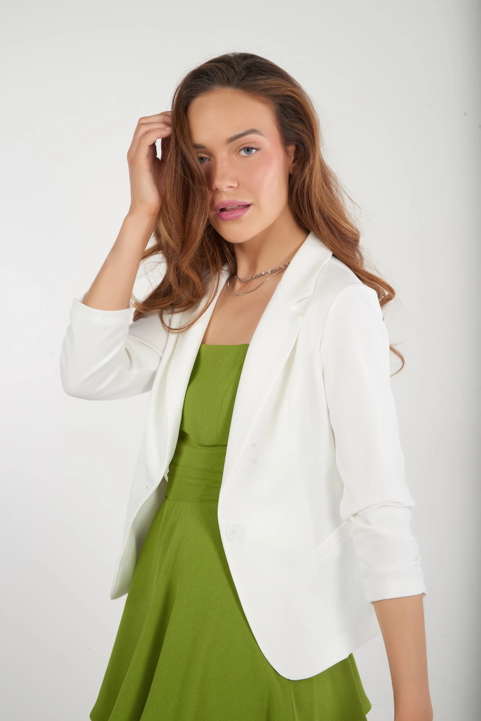 Découvrez notre collection de vestons pour femme, incluant le modèle SWINA-25. Ce veston allie élégance et raffinement tout en apportant une touche de modernité grâce à ses manches trois-quarts et sa palette de couleurs. Disponible en plusieurs couleurs : veston blanc cassé, veston olive, veston noir, et bien d’autres.